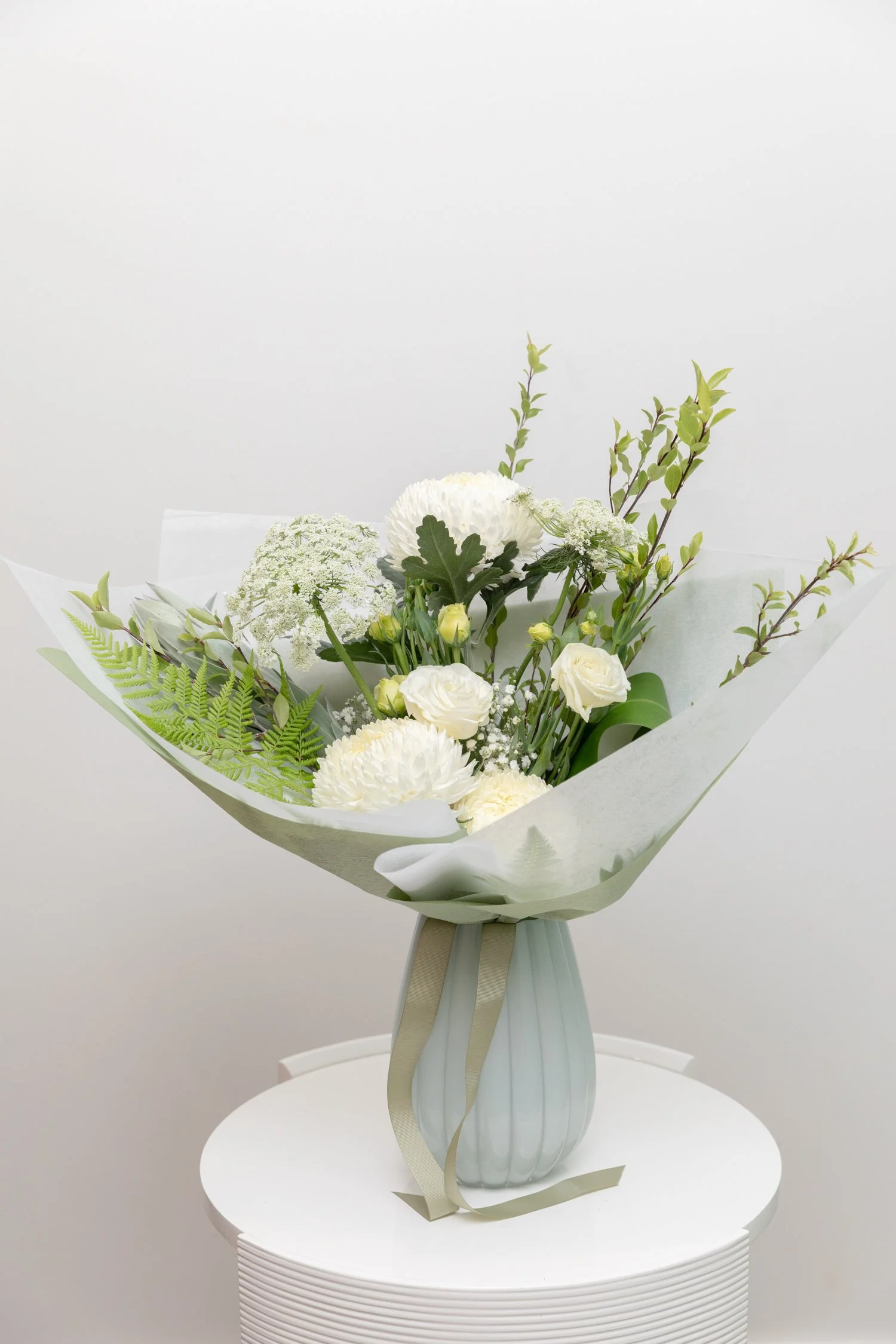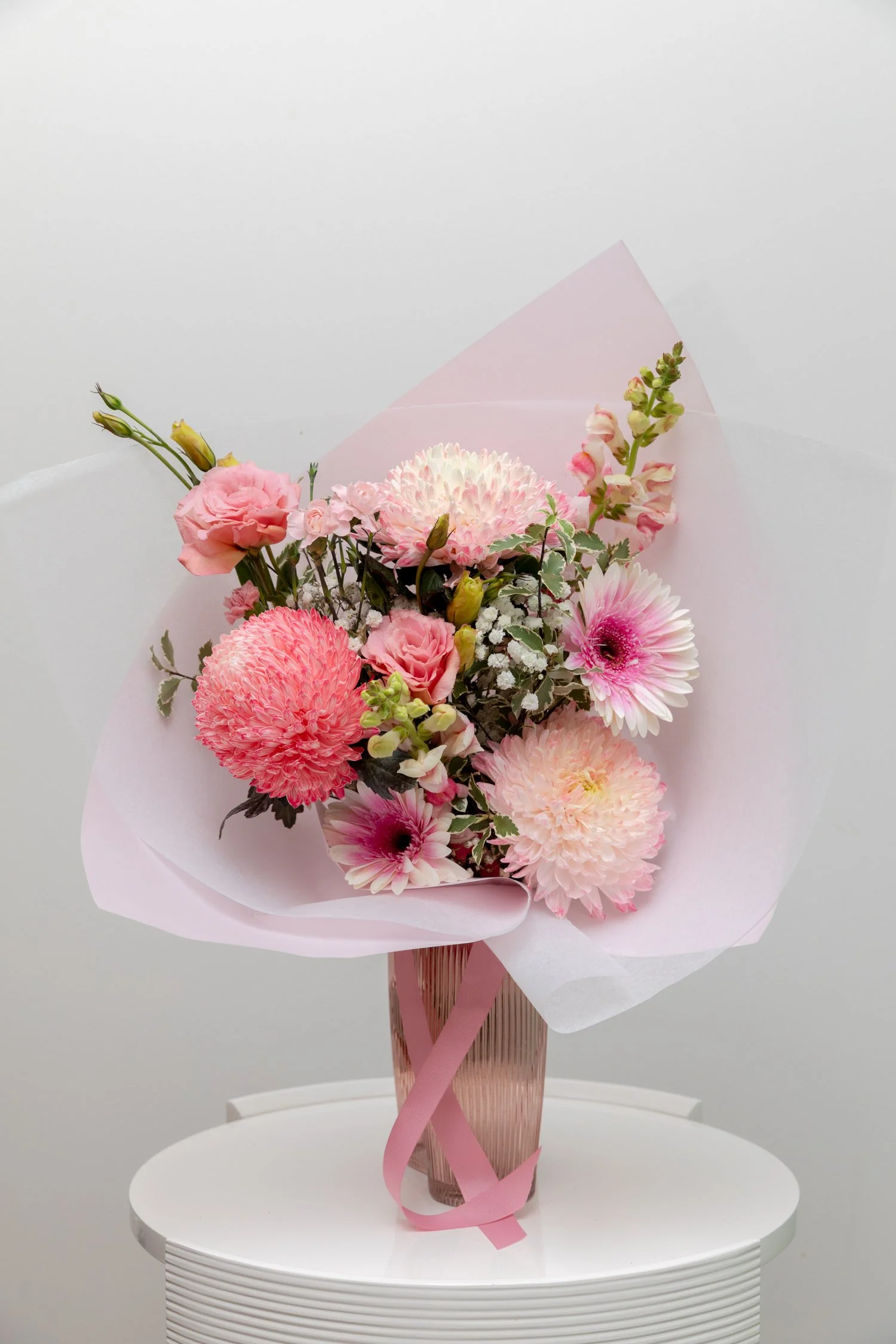 Luxurious red rose bouquet with a lovely seasonal mix of foliage & filler. The 'I love you' of flowers. Option of either half a dozen or a dozen red roses. For other rose colour options please call or send us a message.